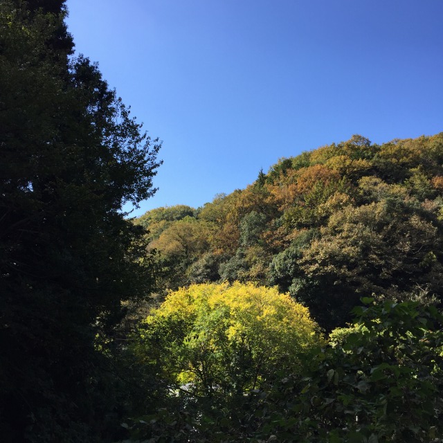 峠を上ると色付く木々の華やかさを感じつつ