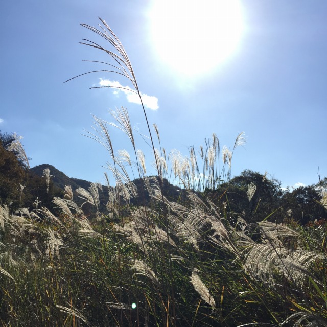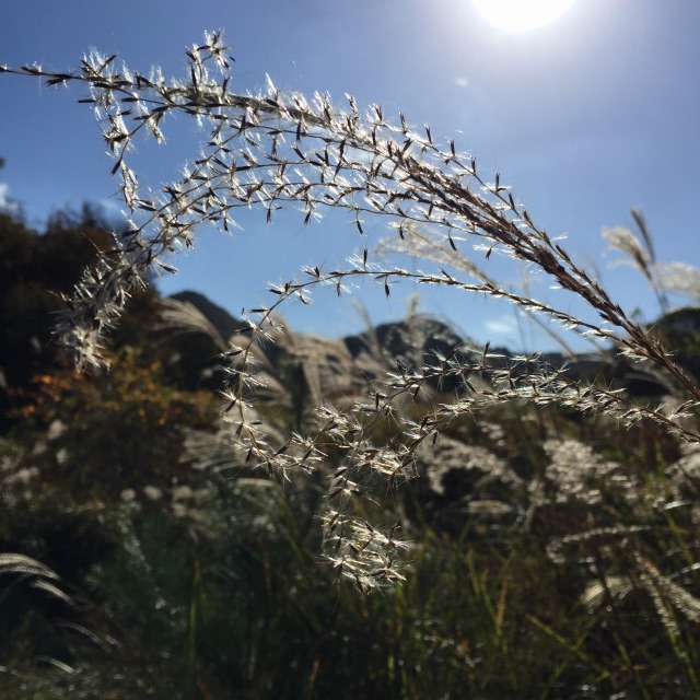ススキの穂が秋の光に透けて揺れていた。