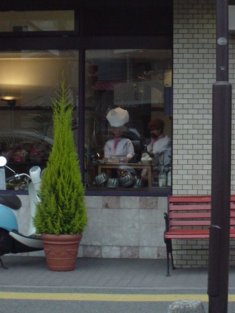 2006-03-24 パン焼くディスプレー人形 日々 #その他祝日、記念日、年中行事 今日は帰りに一杯やって帰った。 週末の一杯は気分がいい。 明日は友人とツーリングです。 先日、見つけたものですが 広島で見つけた、このセンターのコックさん ディスプレー人形でパンを焼いてるんですよ。 車だったんで確認できなかったですが 隣は人間なのだろうか?